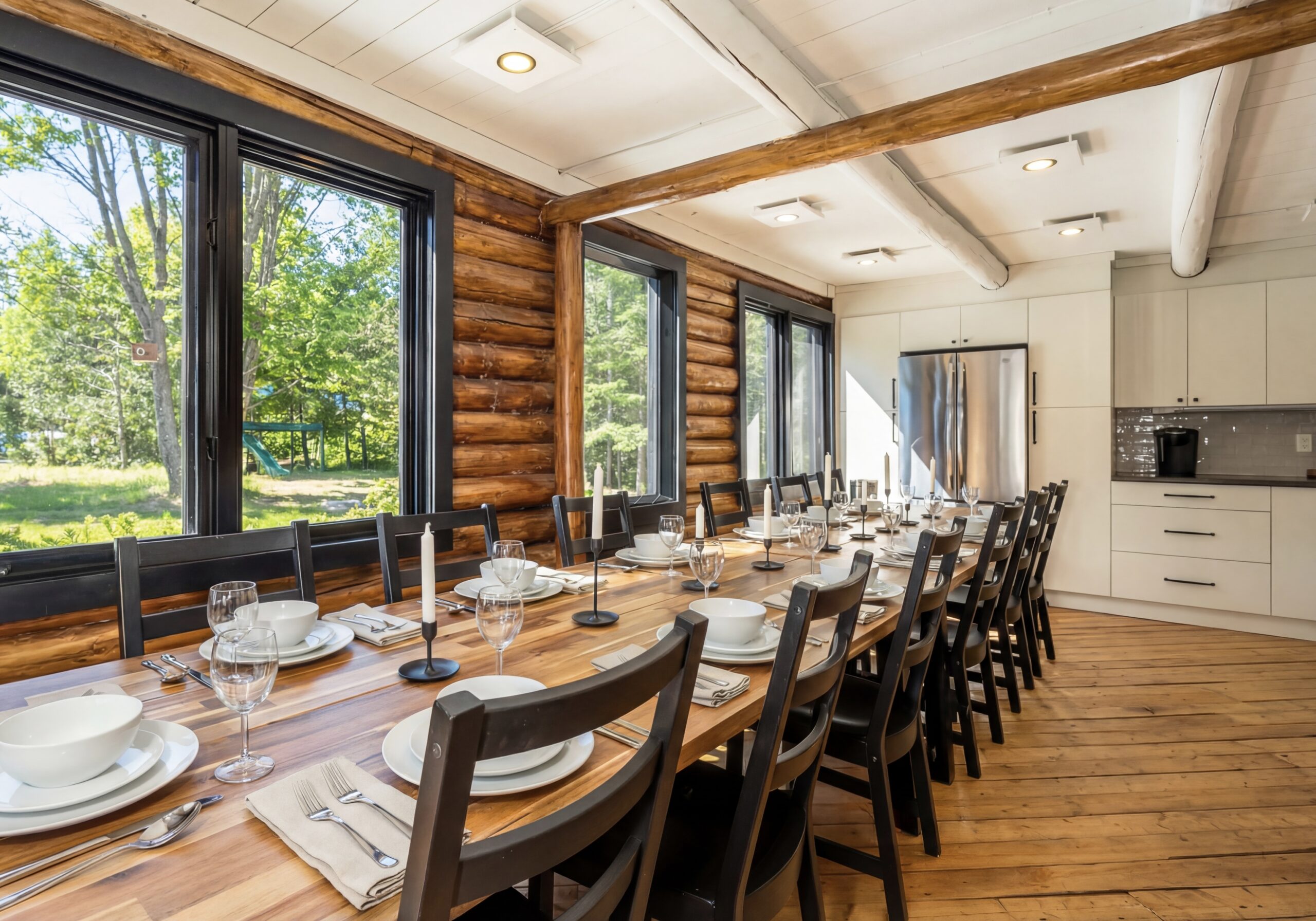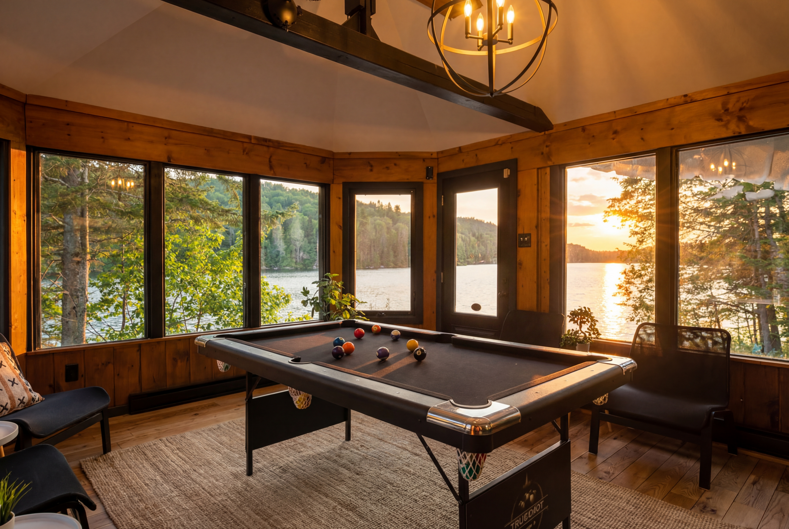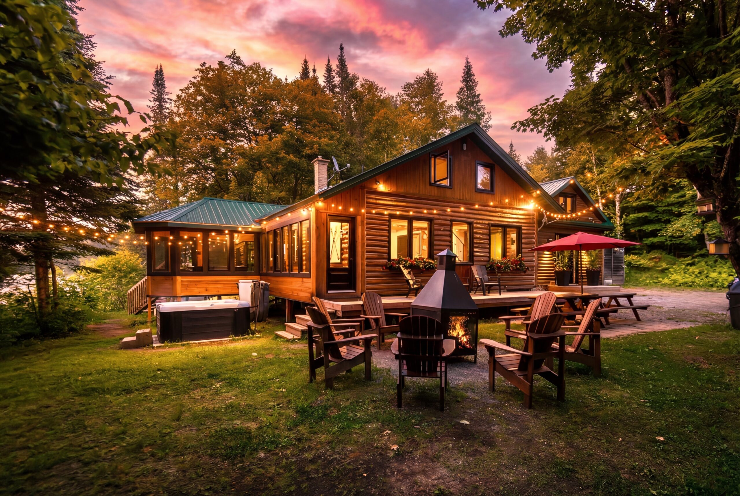 Experience a serene lakeside escape at Chalet FAMILIA, a spacious 14-guest retreat with a private spa, indoor & outdoor fireplaces, pool table, solarium, and direct lake access.Perfectly located between Mont-Tremblant and Saint-Sauveur, this family-friendly log cabin offers everything from canoeing to cozy evenings by the fire.