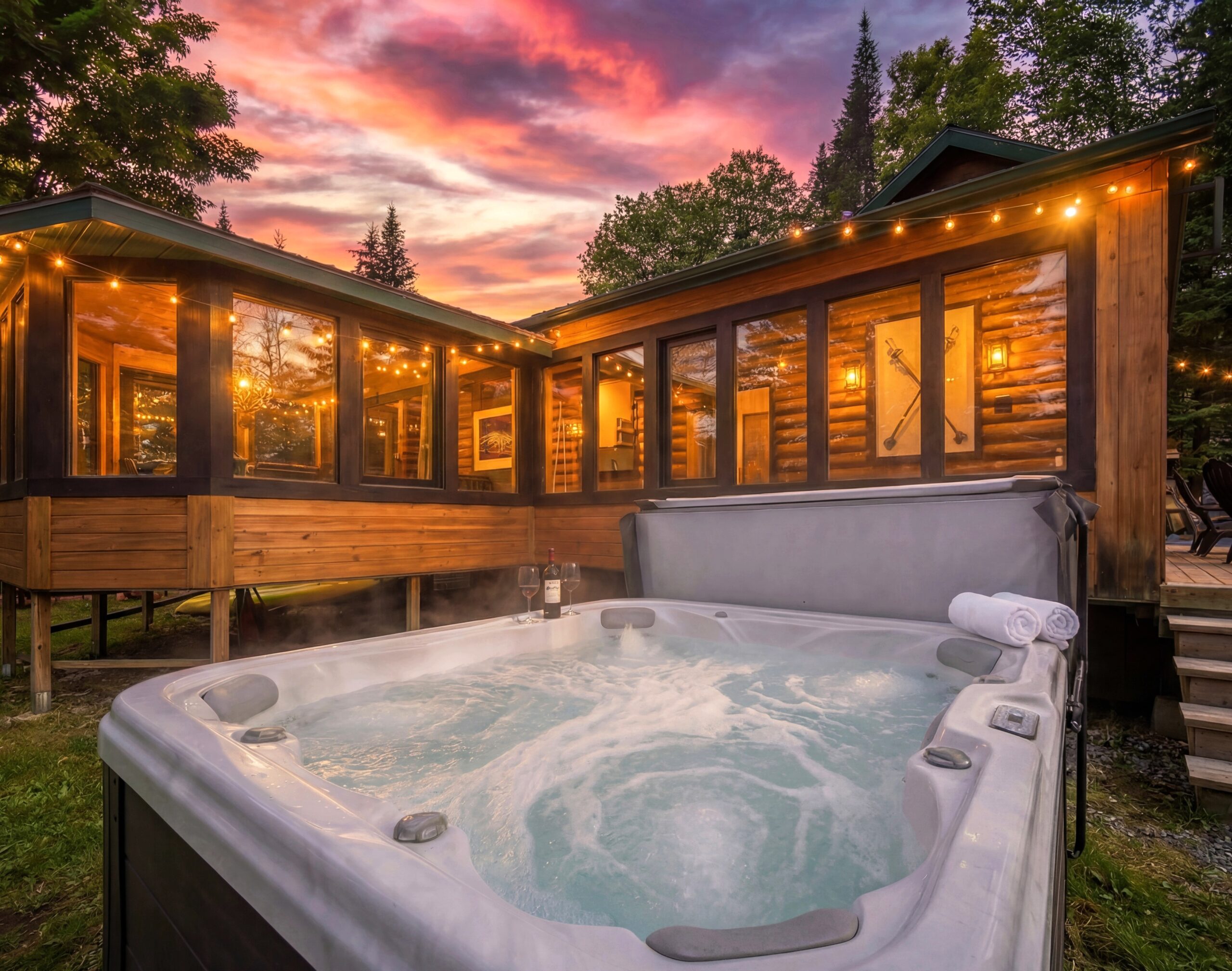 Enjoy year-round outdoor spa sessions, peaceful mornings in the solarium, cozy evenings by indoor or outdoor fireplaces, or friendly competition with the pool table and foosball. With lake views, large living spaces, and a fully equipped kitchen, FAMILIA is ideal for gatherings, reunions, or quiet nature escapes.
