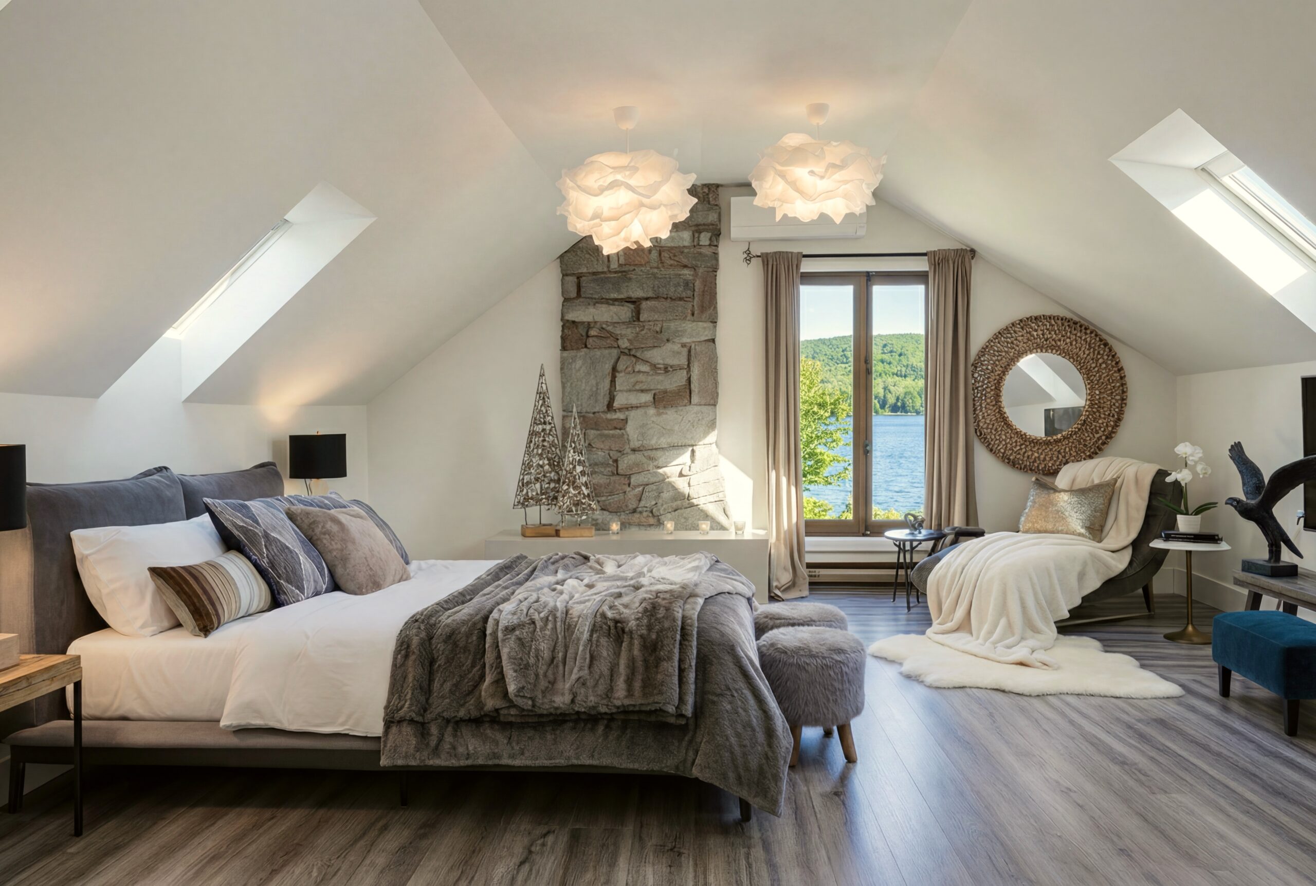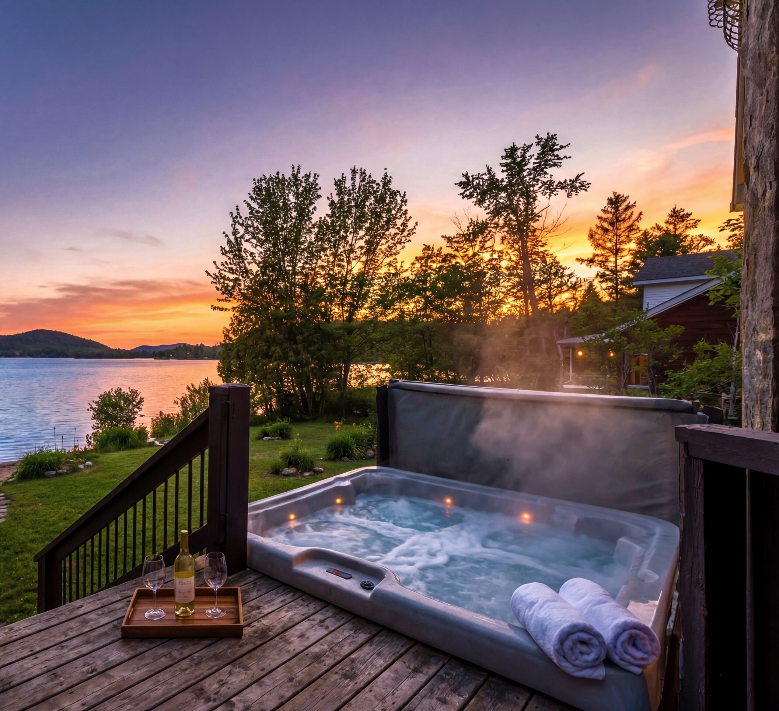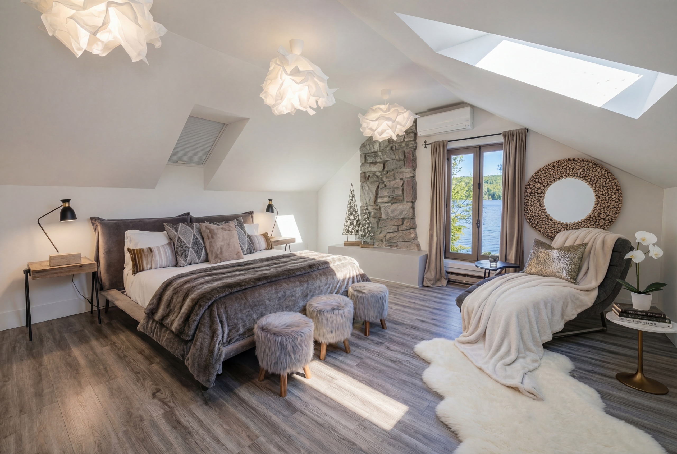 Experience a luxurious lakeside escape at Chalet Bord du Lac near Mont-Tremblant, featuring a year-round spa, stunning lake views, and spacious accommodations for up to 16 guests. Perfect for family gatherings, corporate retreats, or special celebrations.