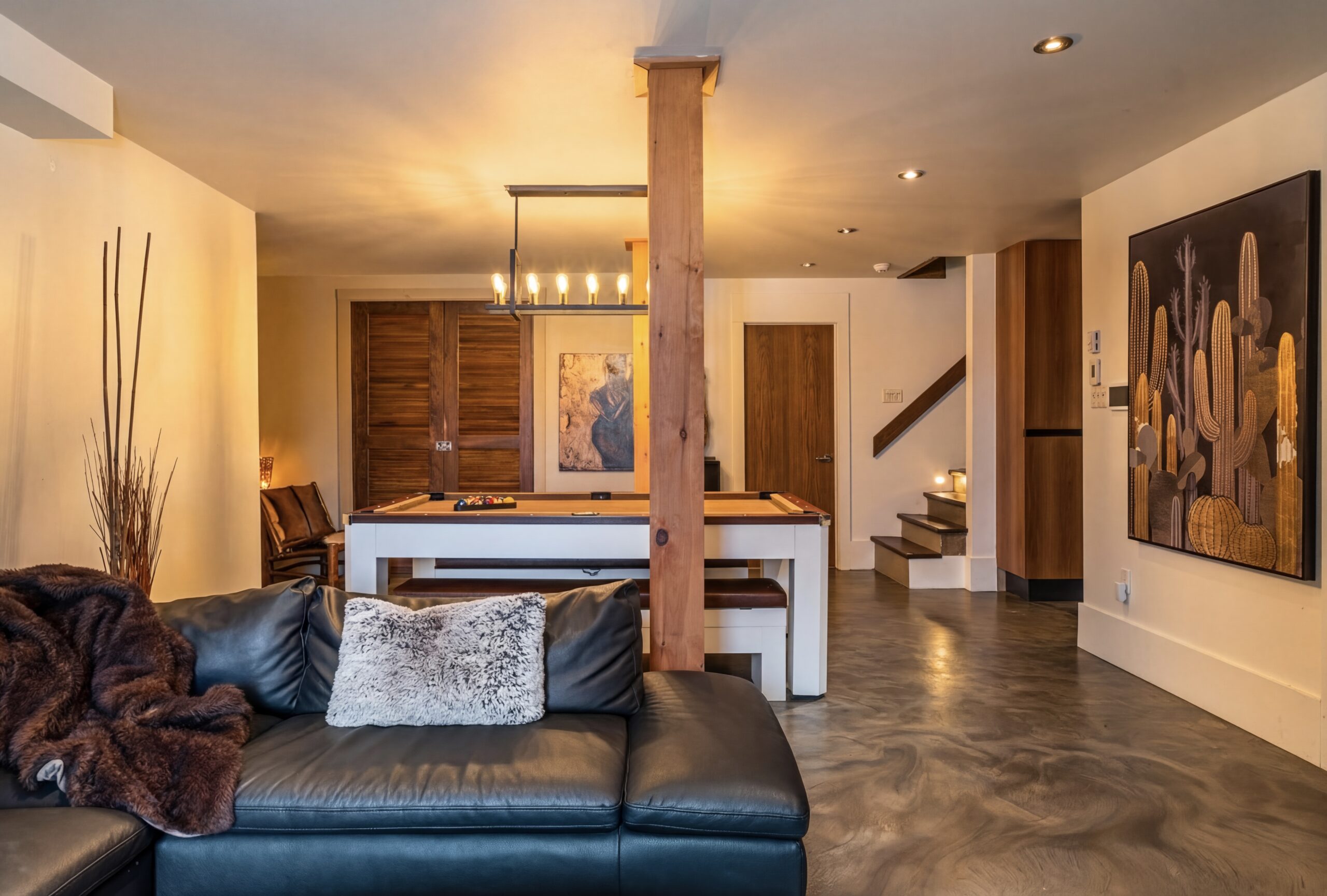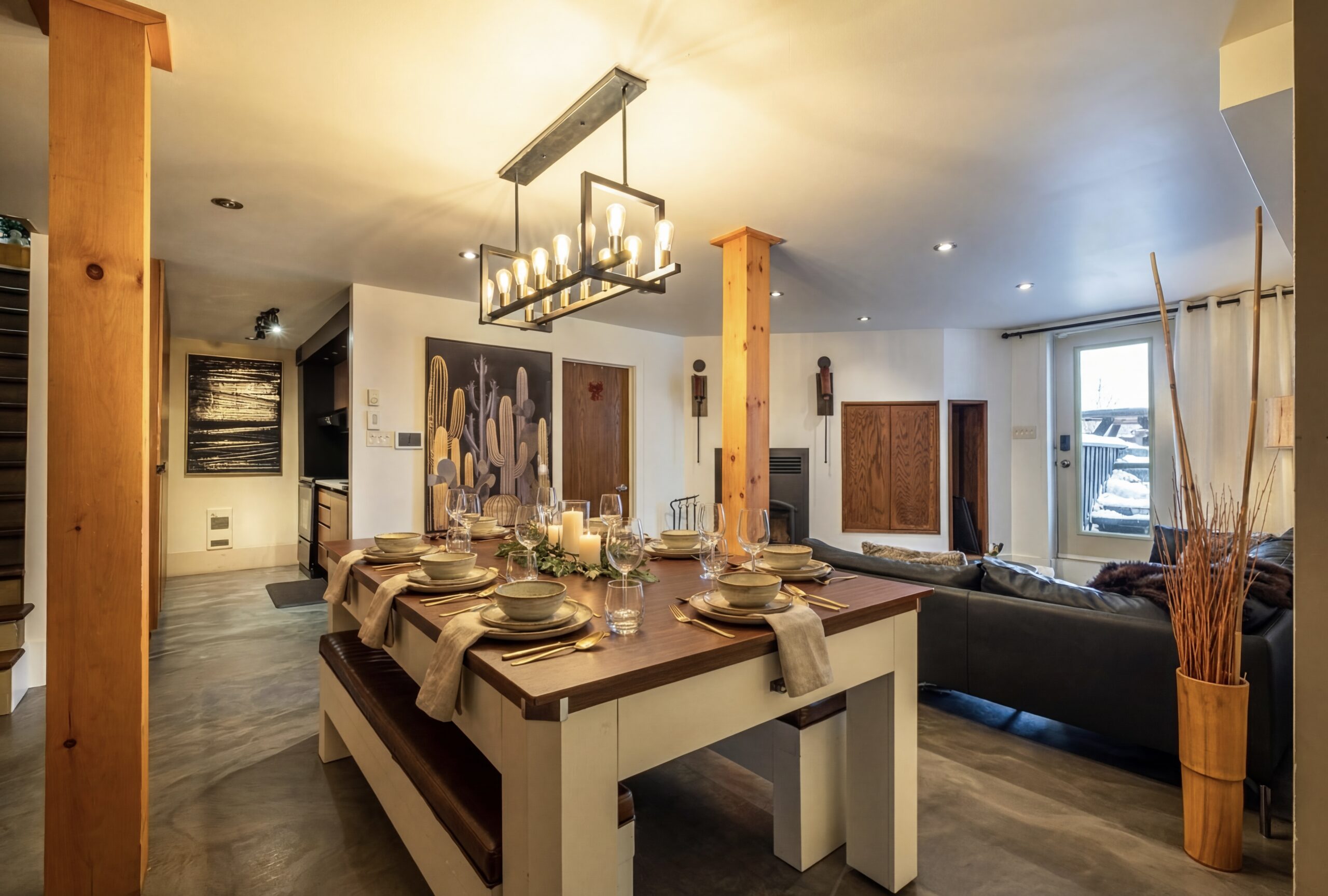 The chalet is thoughtfully designed for large groups, providing ample space for gatherings, meals, and activities. Enjoy kayaks, paddleboards, and a 3-in-1 pool table, ping pong, and more for entertainment. Every detail is curated to ensure a memorable stay in the heart of the Laurentians.