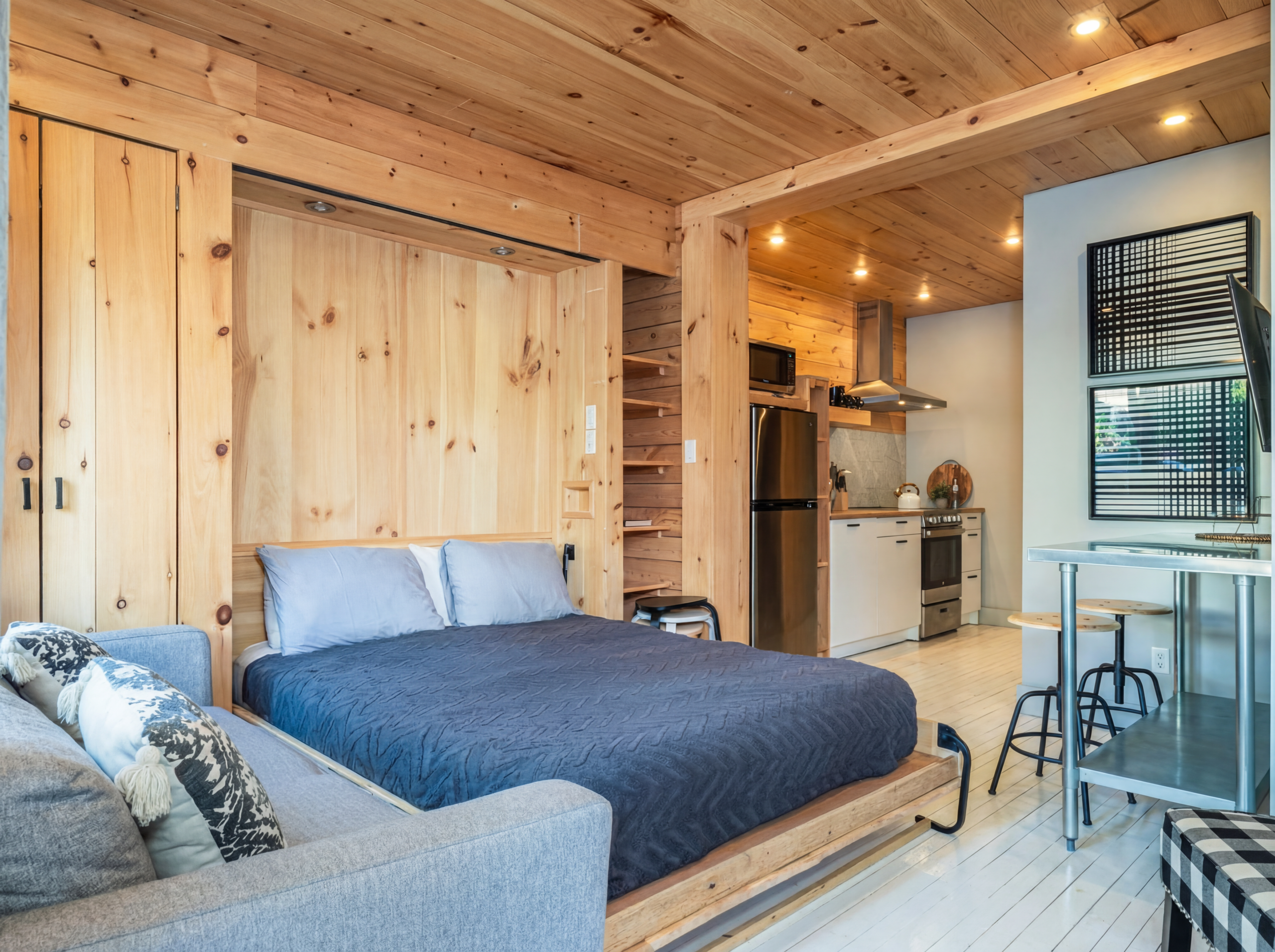 Escape to The LIMA in the Laurentians, a romantic lakeside loft perfect for couples. Enjoy a private outdoor spa, cozy fireplace